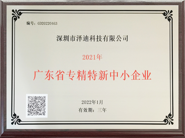 廣東省專精特新中小企業-澤迪